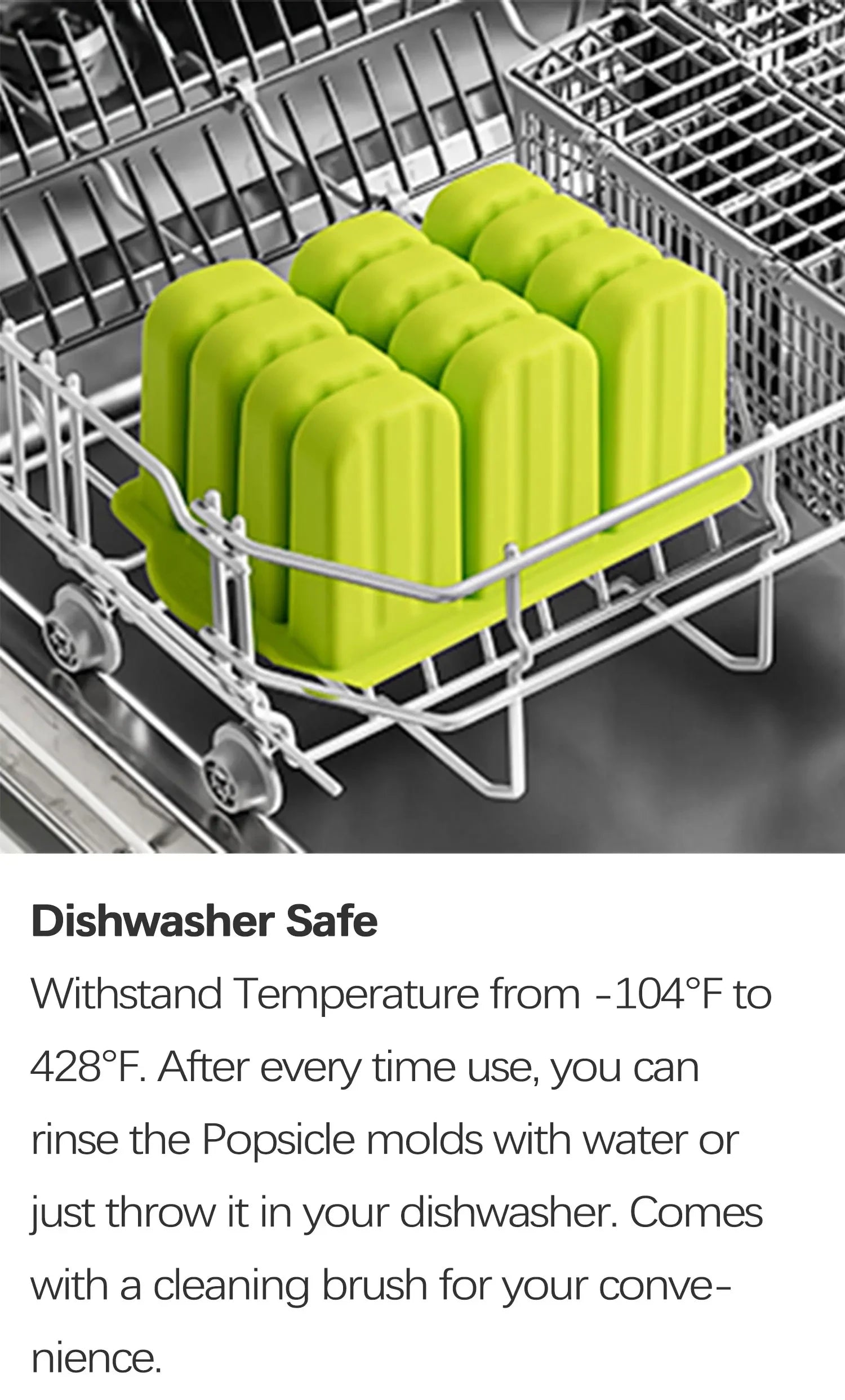 Great Ice Popsicle Maker Mold Set: Comes with 50Pcs high-quality wood Popsicle sticks, Popsicle bags and cleaning brush. Easy to clean by dishwasher or hand with warm soapy water.
