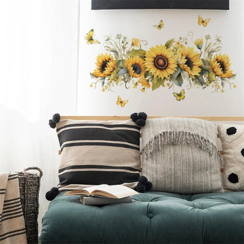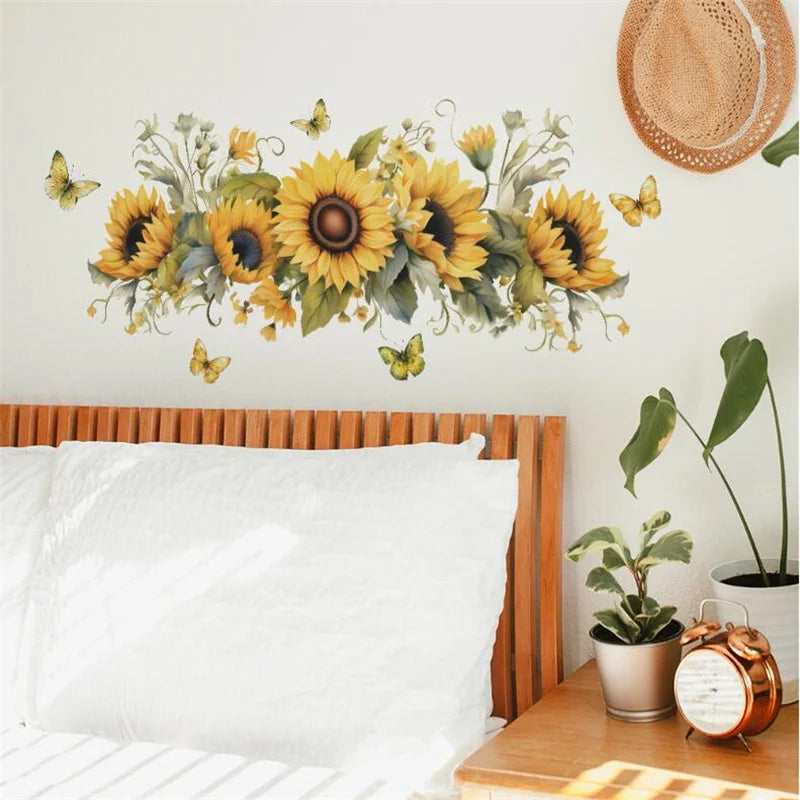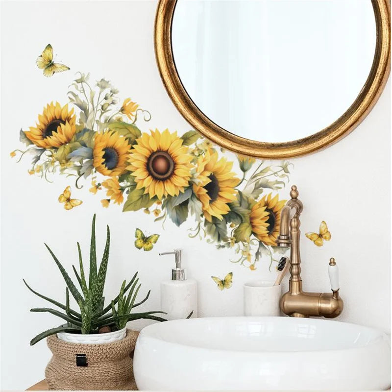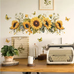 Sunflower Wall Decal Self-adhesive Sunflower Wall Sticker Removable Flower Mural DIY Wall Art Decor for Nursery Bedroom Kitchen