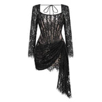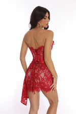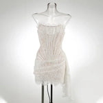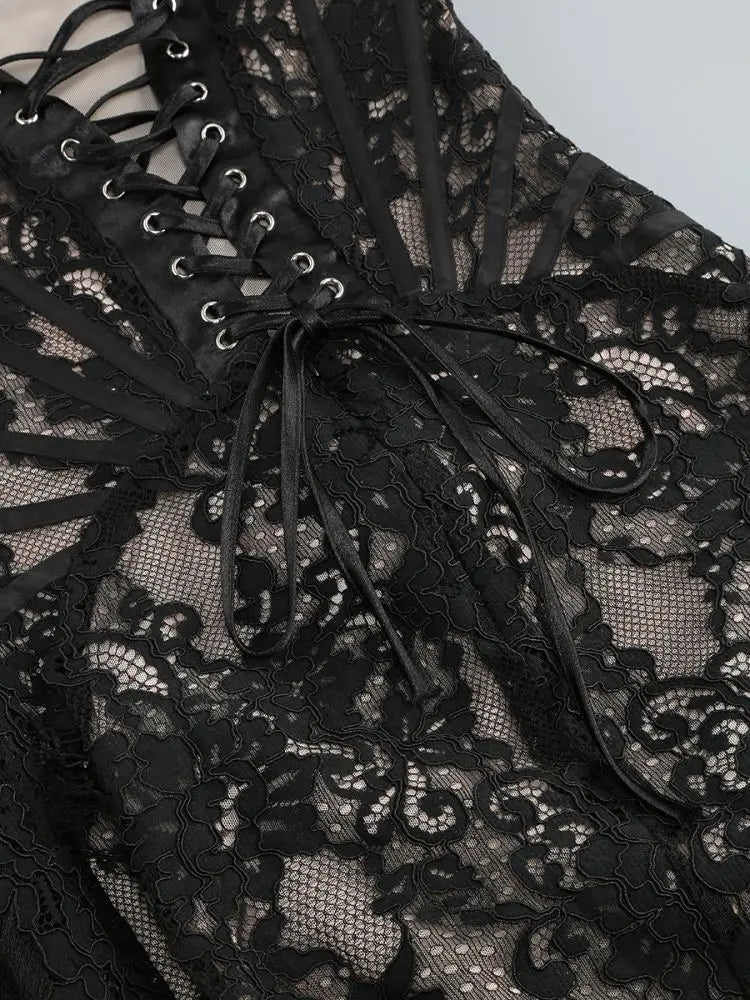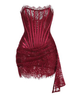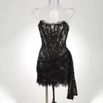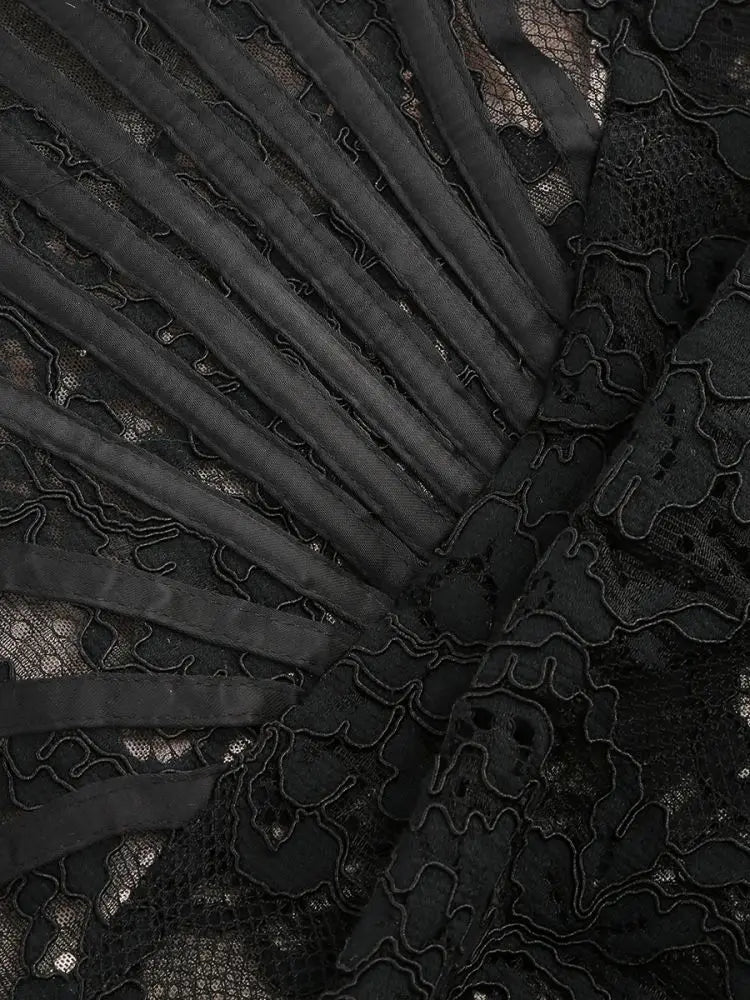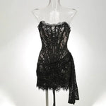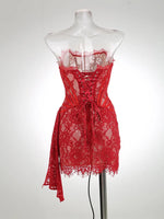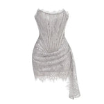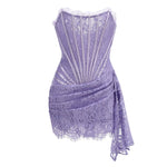 Talenza Women's Sexy Lace Dress Solid Color Sheer Patchwork High Waist Lace Dress Elegant Printed Strapless Slim Evening Dress