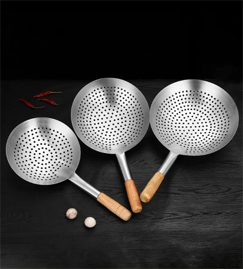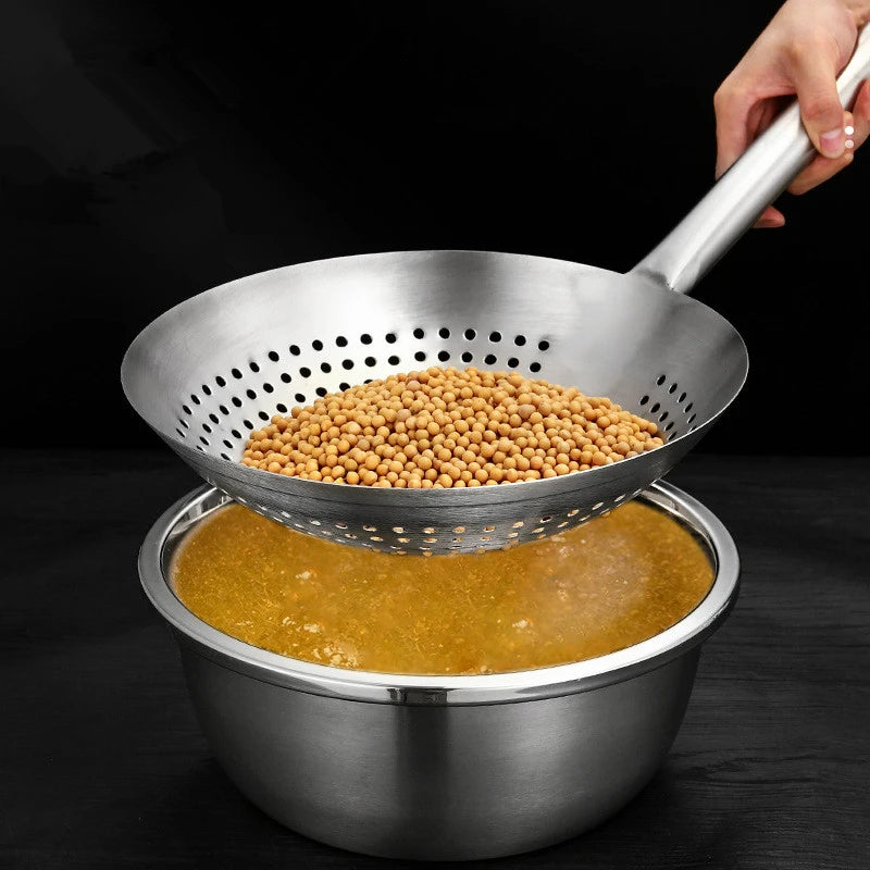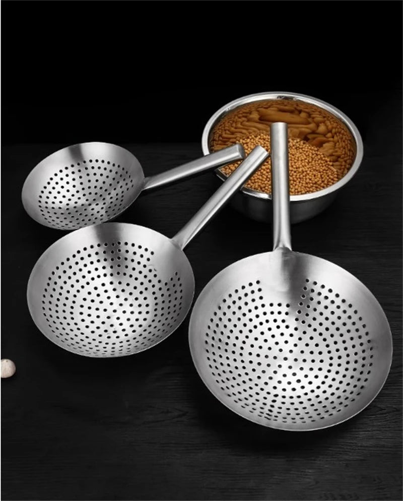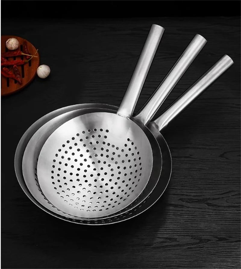 Thickened 304 Stainless Steel Colander with Long Handle Large Creative Oil Flour Noodle Dumplings Sieve Skimmer Scoop Kitchen To