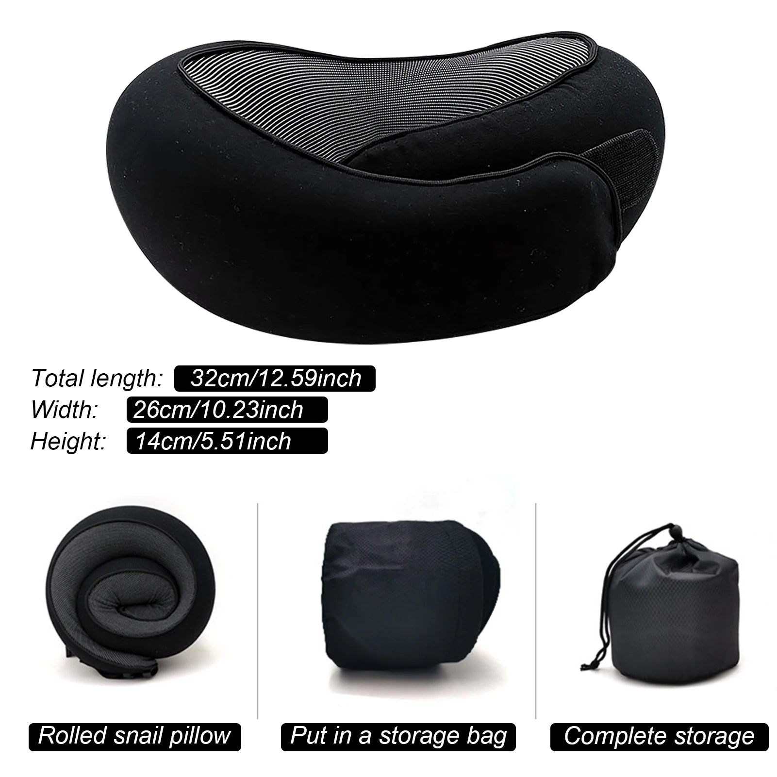 Travel Neck Pillow Memory Foam U-shaped Pillow Snail Style Travel Neck Support Portable Adjustable Soft Noon Break Sleep Pillows
