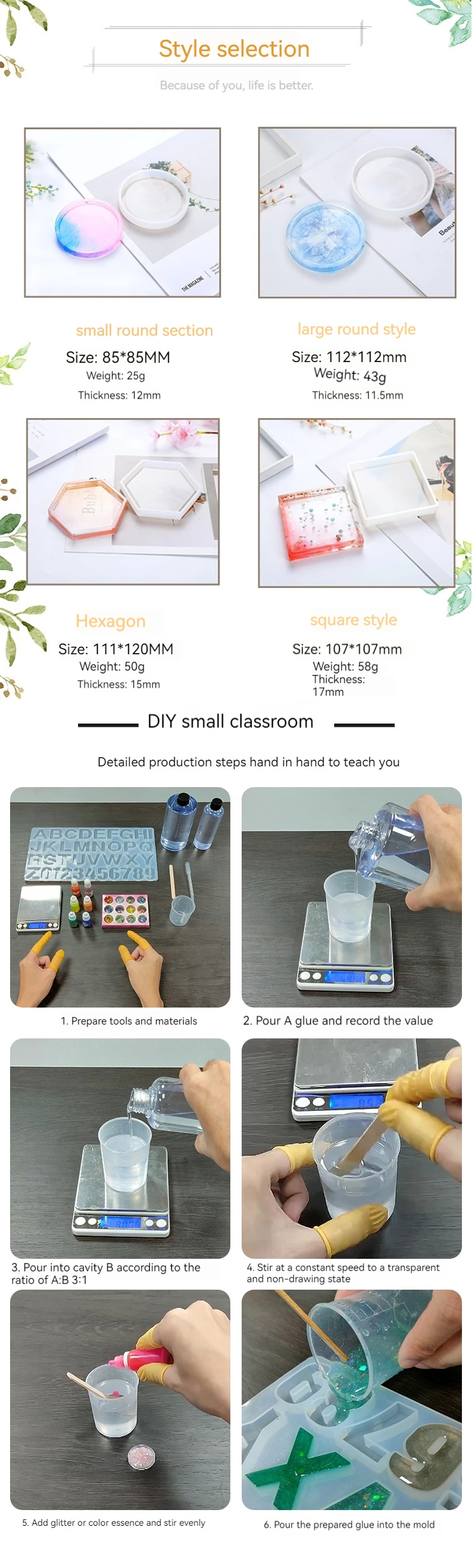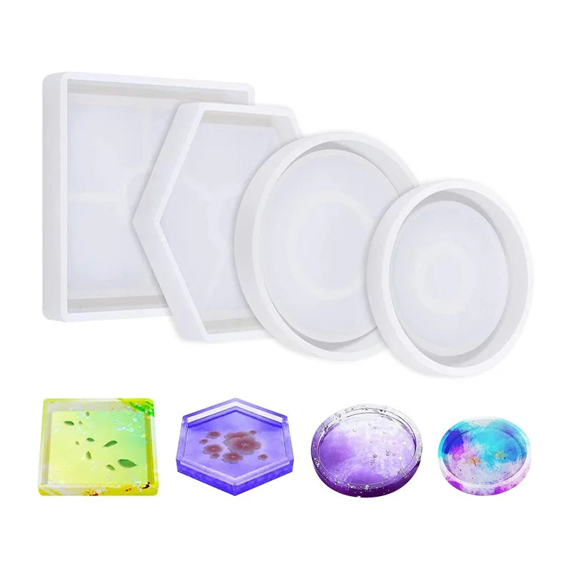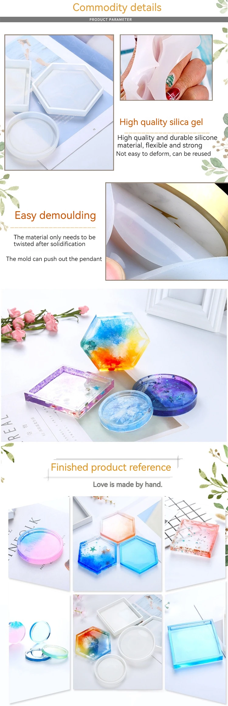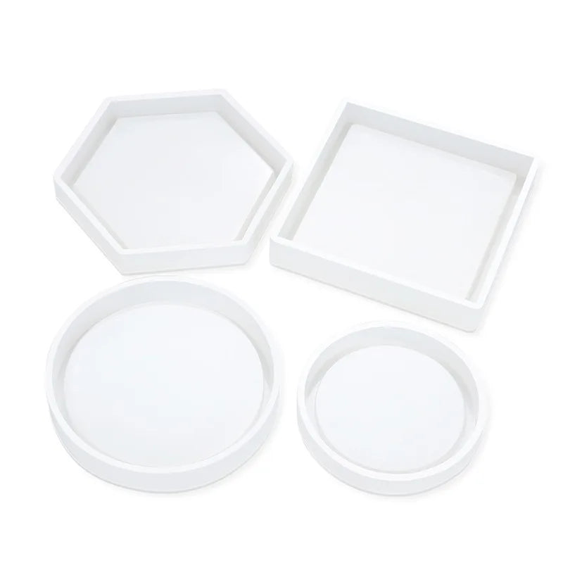 Tray Silicone Mold DIY Crystal Square Round Hexagon Coaster Silicone Mold Plate Storage Holder Epoxy Resin Mold Home Decoration