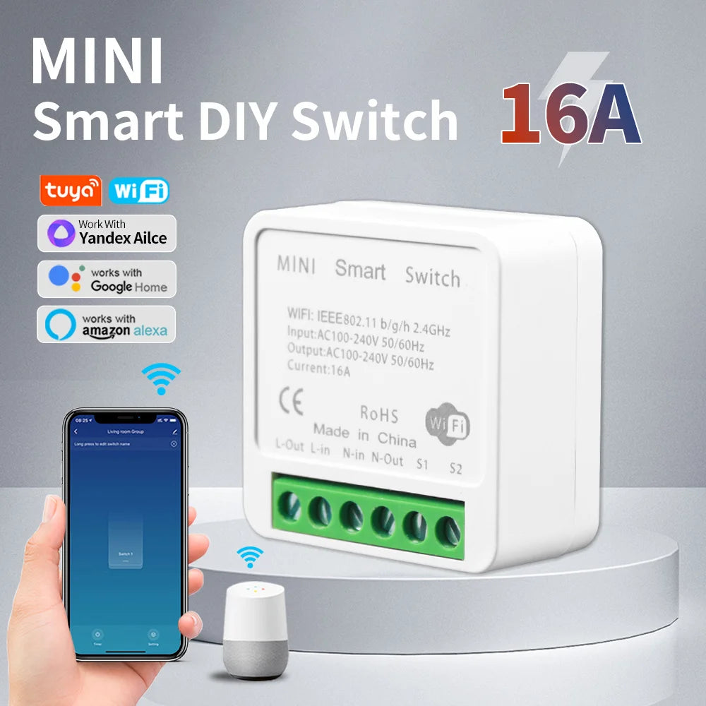 Tuya Mini Wifi Smart Switch Module Support 2 Way Control Smart Home DIY Switches Smart Life APP Alexa Google Home Voice Control