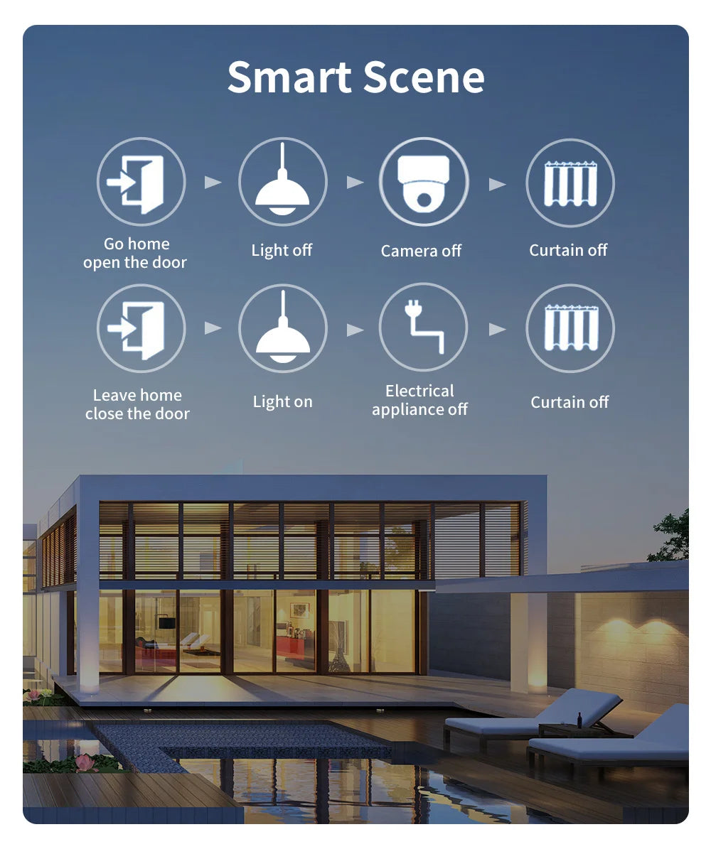 Creating your own scene to trigger ON/OFF home appliances by departure mode, home mode, temperature, humidity, or other environmental
