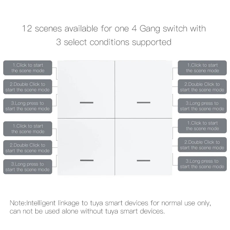 • 12 Scene Switches :Control up to 12 different scenes in your home with ease, making it perfect for those who want to customize their smart home experience.