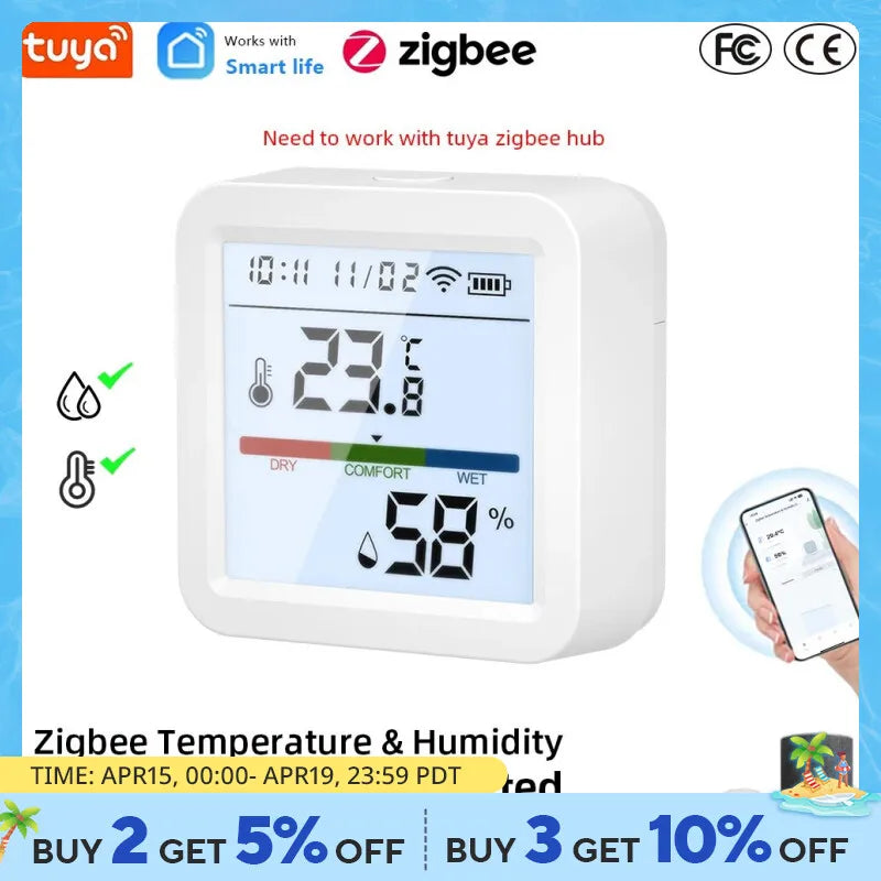 Tuya ZigBee Smart Home Temperature Humidity Sensor with BackLight LCD Works With Google Assistant and Need Tuya Zigbee Hub
