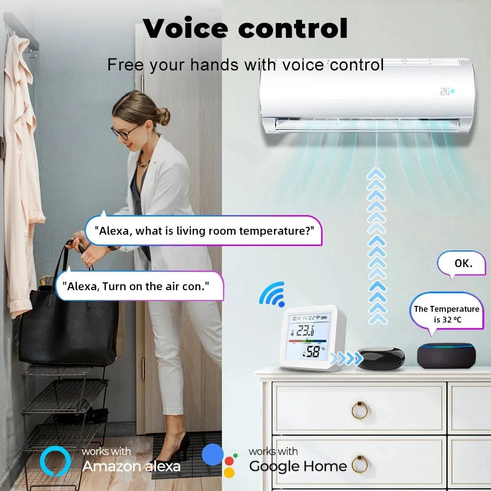 Este sensor es compatible con Amazon Alexa y Google Home Assistant. Puede escuchar la temperatura y la humedad actuales por voz.