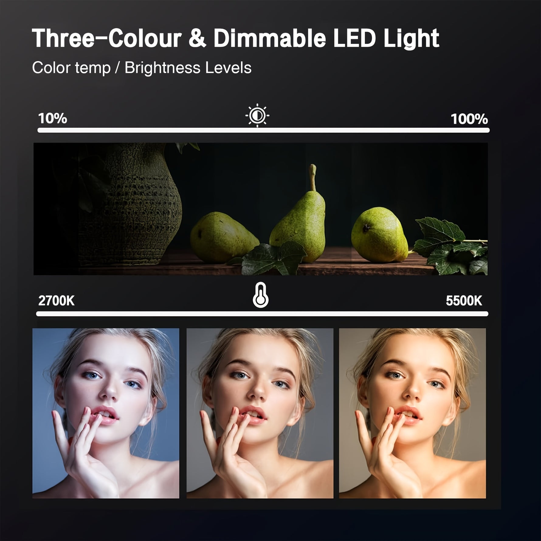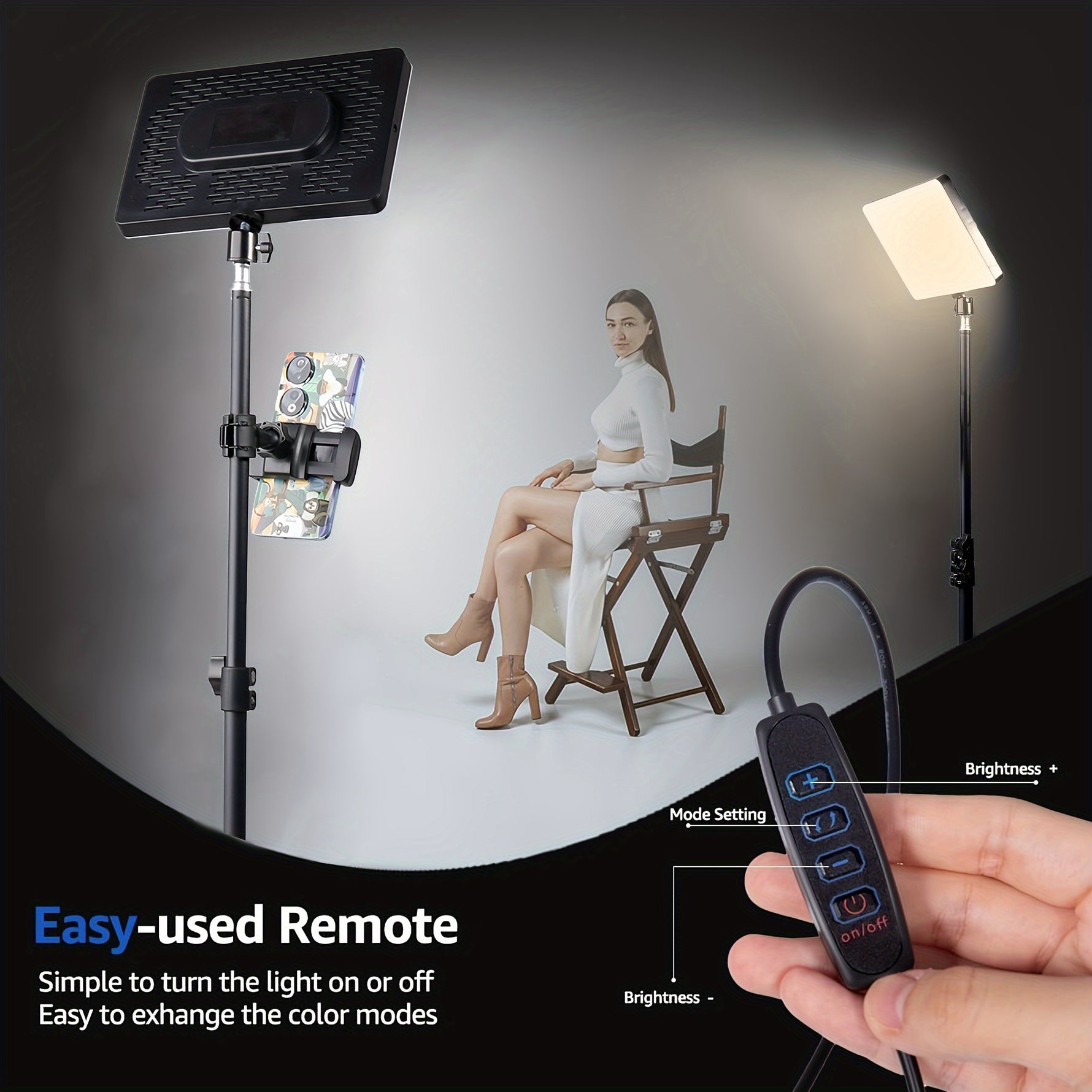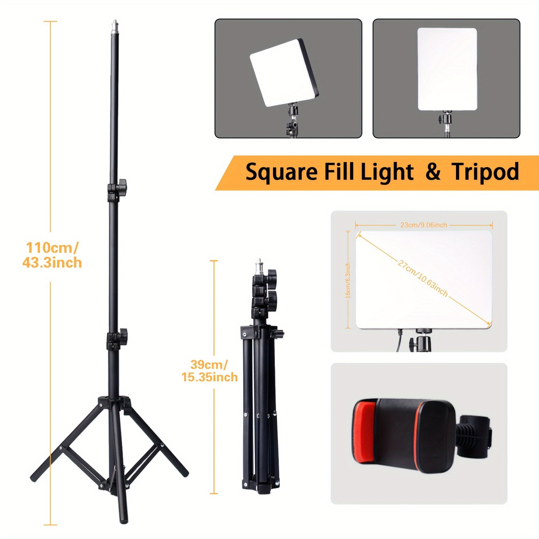 UEGOGO 1 Set Photographic Light Assembly, 10 inch Square LED Fill Light, with Adjustable 43.3 inch/110cm Tripod, with Cell phone clip, for Studio, Photography and Live Streaming