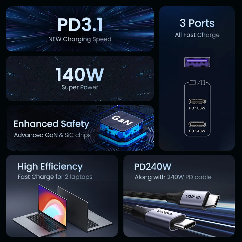 UGREEN 140W GaN Charger - USB Type C Fast Charge