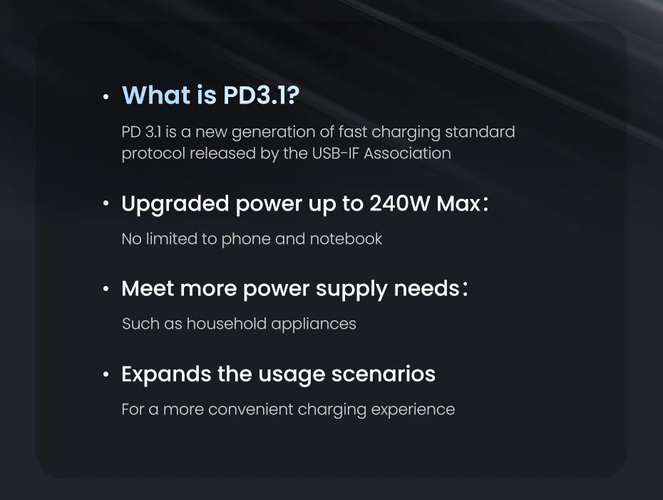 USB-C 2 output: 5V3A,9V3A,12V3A,15V3A,20V5A,100W Max