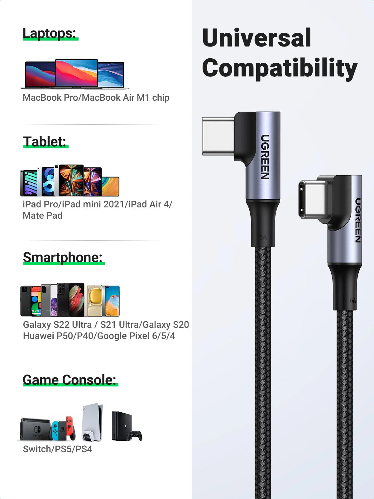 UGREEN PD 100W USB C to USB C Charging Cable for Samsung S10 S20 MacBook Pro iPad 2020 Quick Charger 4.0 PD Fast Charging Cord