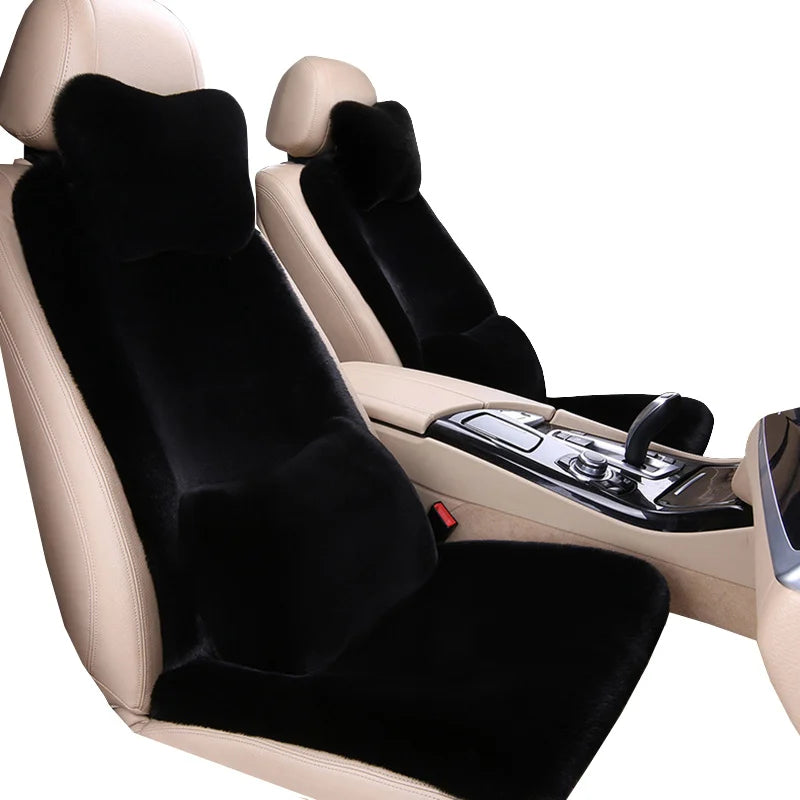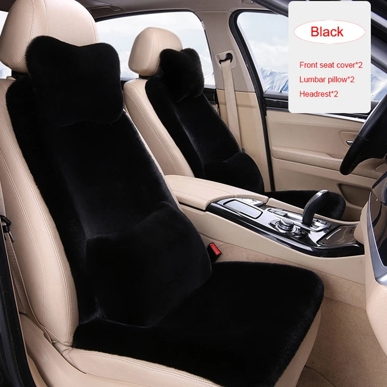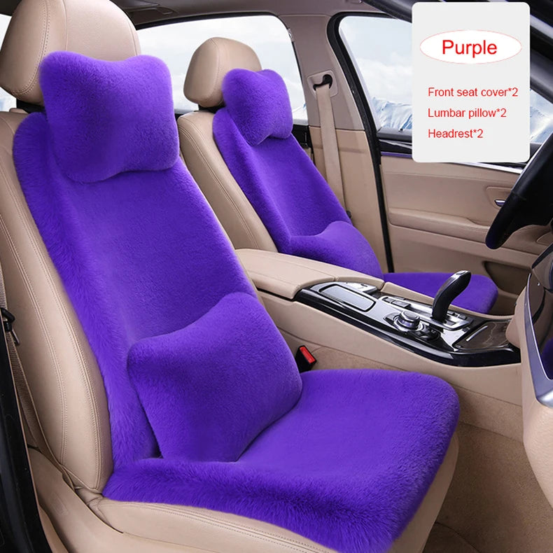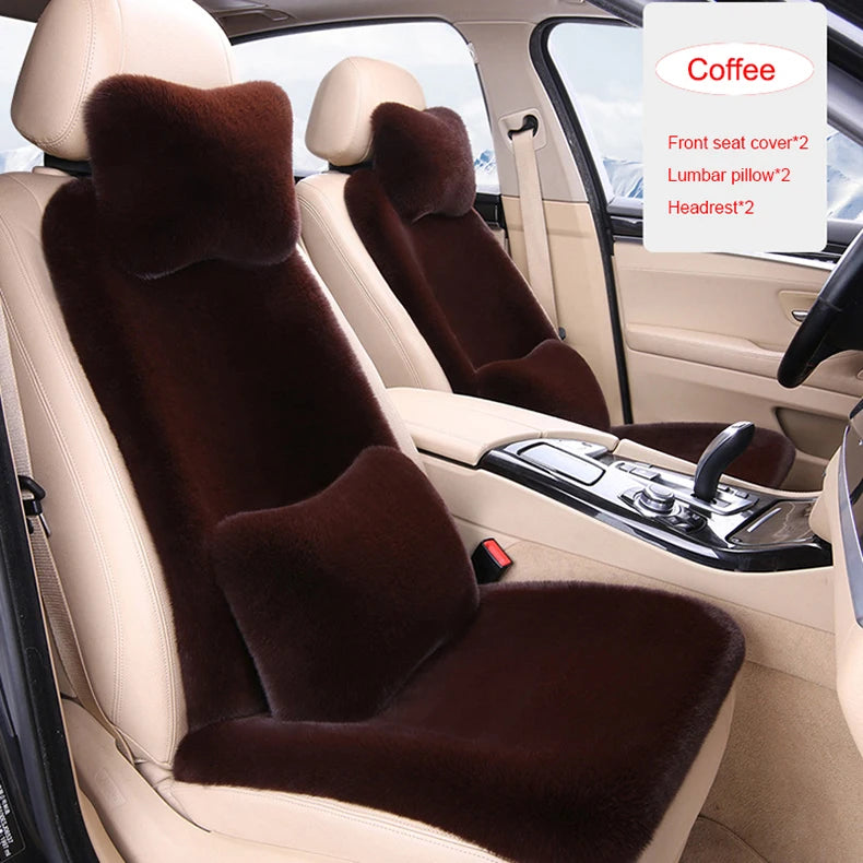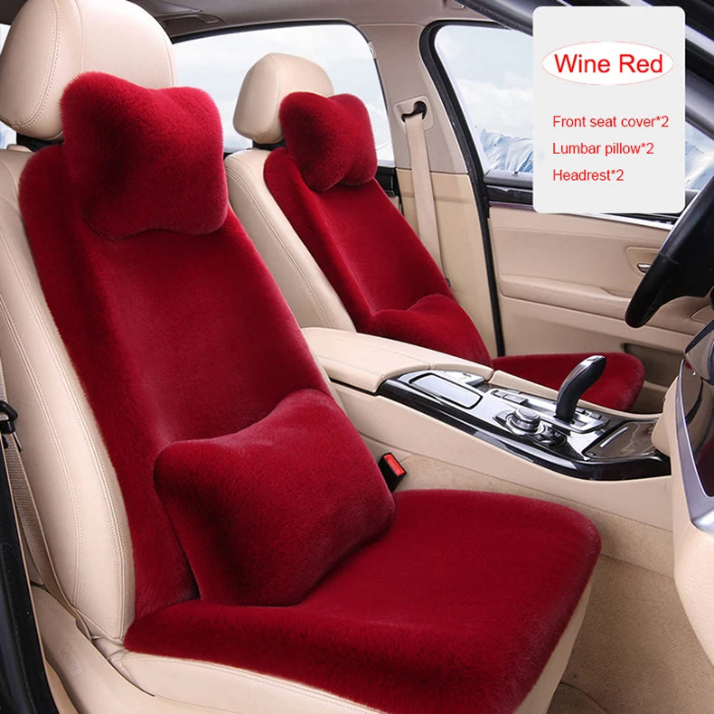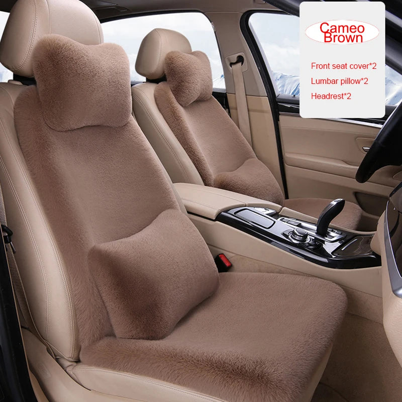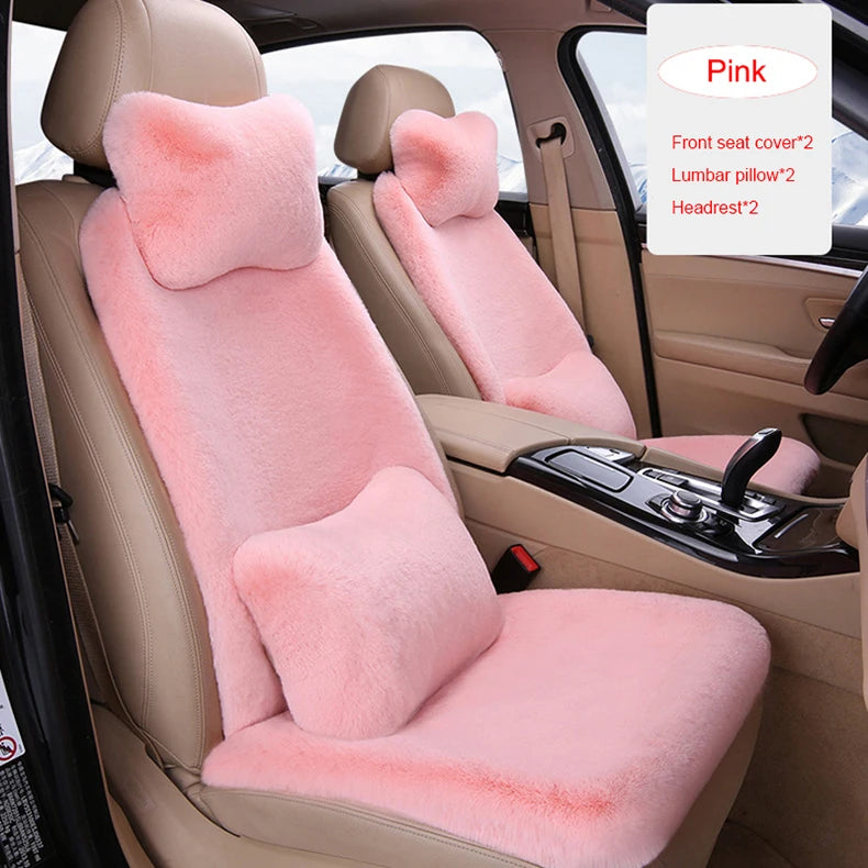 Universal Winter Car Seat Cushion Headrest Lumbar Support Imitated Rabbit Fur Car Seat Cover Thickened Plush Auto Cape Keep Warm