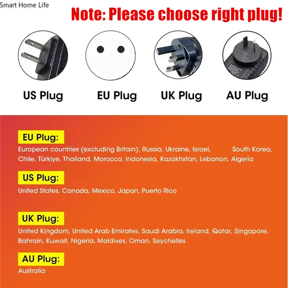 Note: Please choice the right Plug and Voltage!