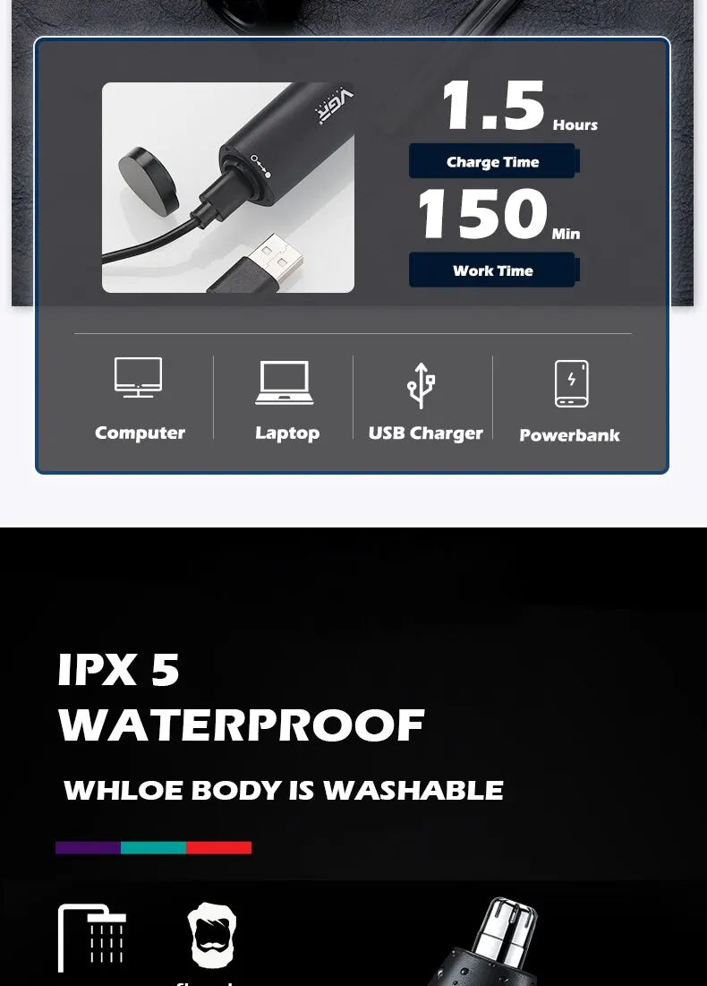 VGR Nose & Hair Trimmer 2 in 1 Washable Professional Hair Removal Appliances Electric Shaver V-613