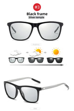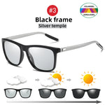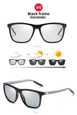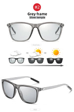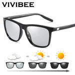 VIVIBEE Color Change Grey Frame Photochromic Polarized Sunglasses Men Square Classic Chameleon Glaases Transition Lens Eyewear