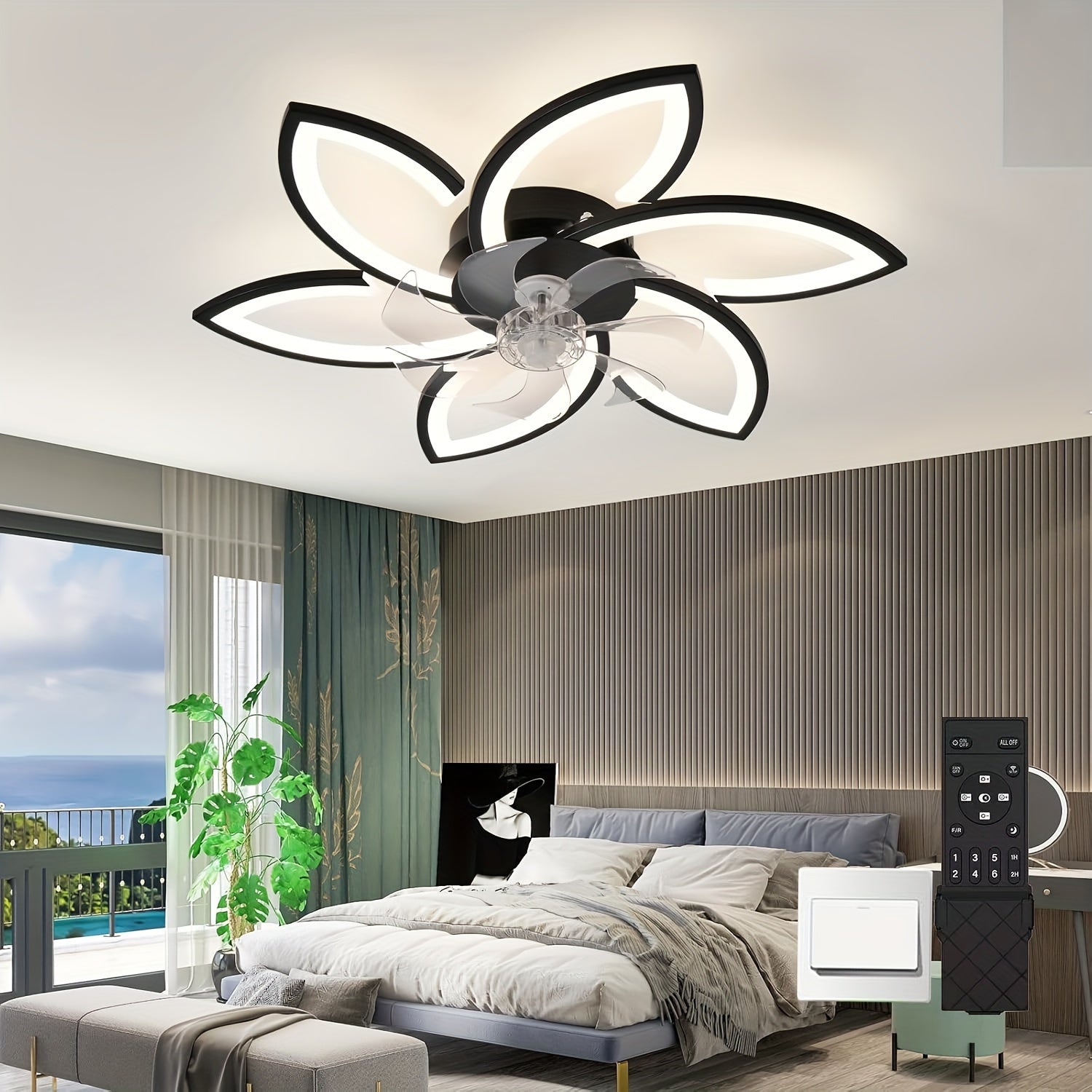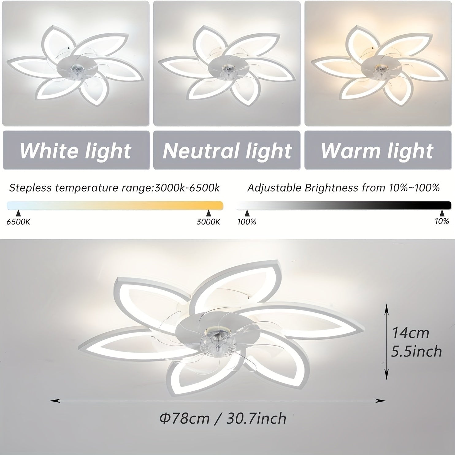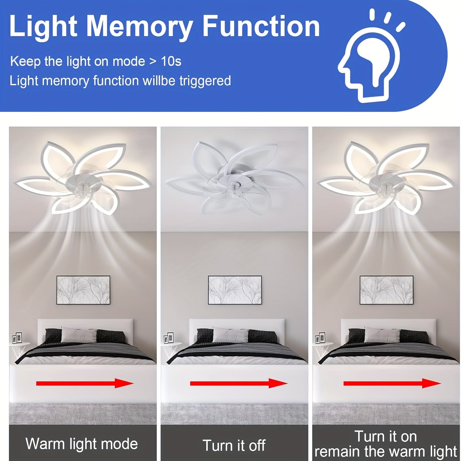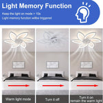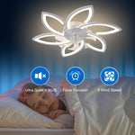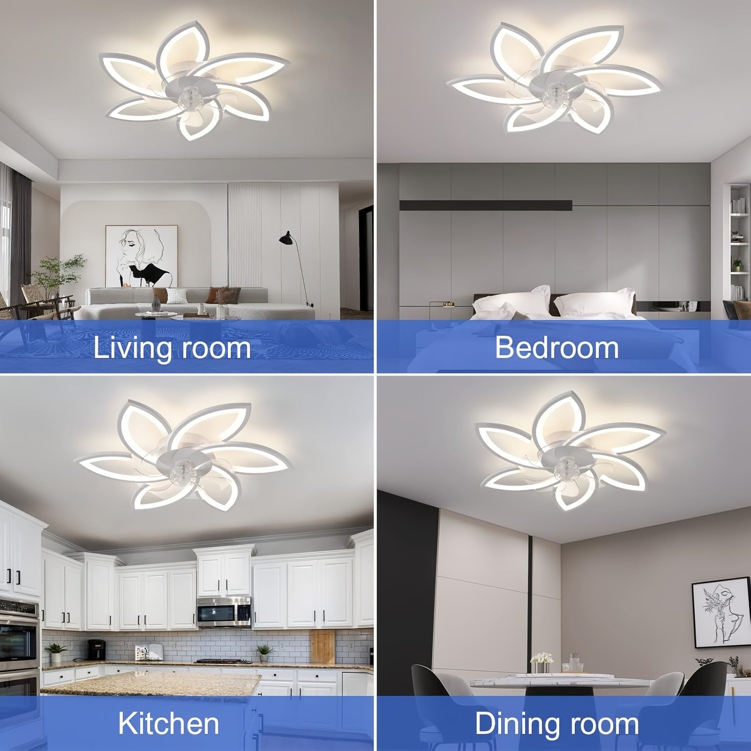 White Flower Design Ceiling Fan with LED Lights, Remote Control, Low Profile Flush Mount, Acrylic & Metal, 110V-240V, Infrared Sensor, Hardwired, for Bedroom Kitchen, Includes Installation Hardware