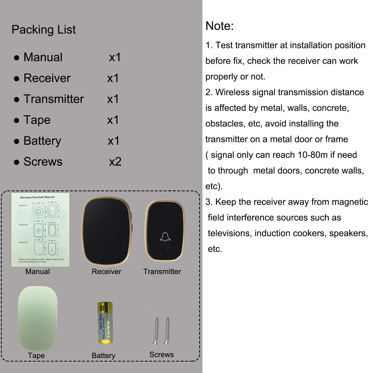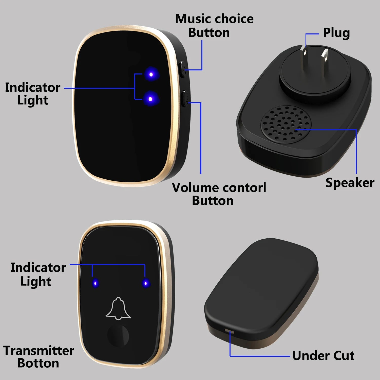 Wireless Doorbell Chime - 300 Meters Long Range Wireless Doorbell Waterproof Outdoor Home Intelligent Door Bell Chime