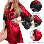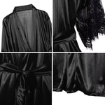 Women Night Gown Robe with G String Floral Lace Bathrobe Halt Sleeve Nightdress Female French Sexy Silky Satin Sleepwear