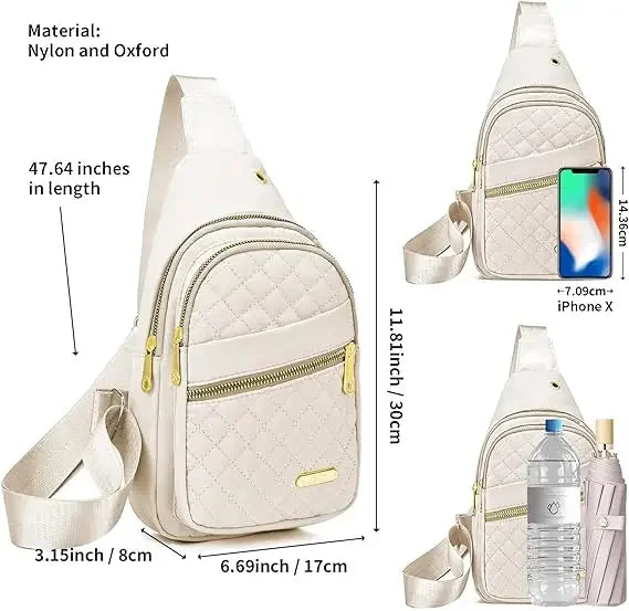 Women Pink Chest Bag 2024 Ladies Waterproof White Chest Backpack Shoulder Bag Oxford Cloth Crossbody Bag Cycling Sports Backpack
