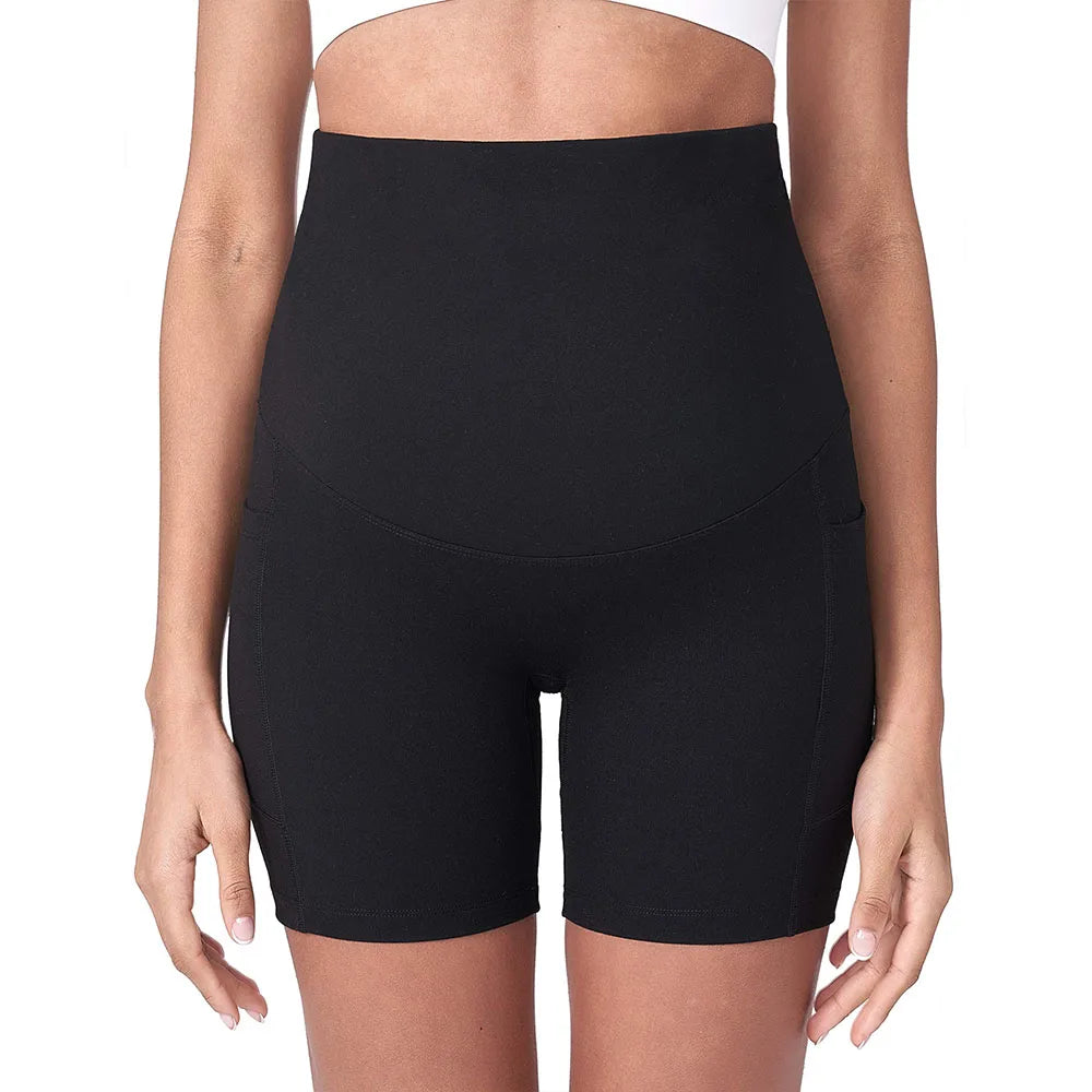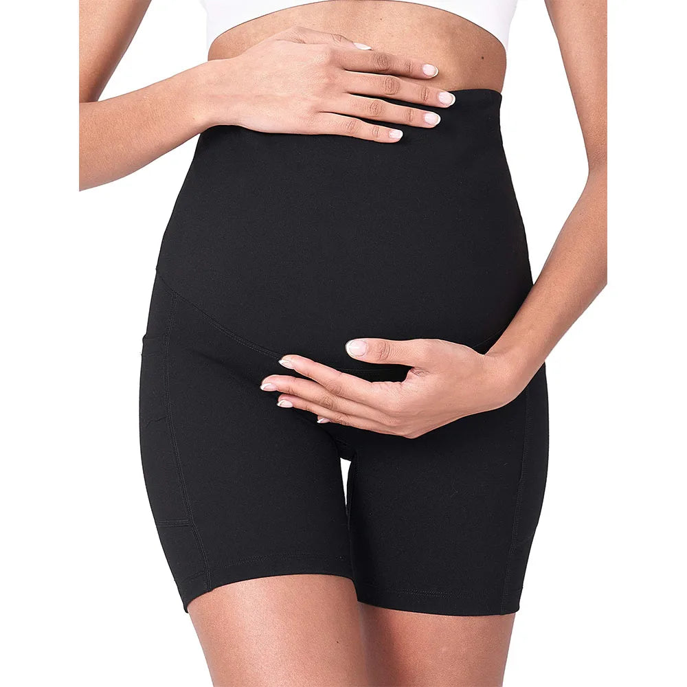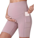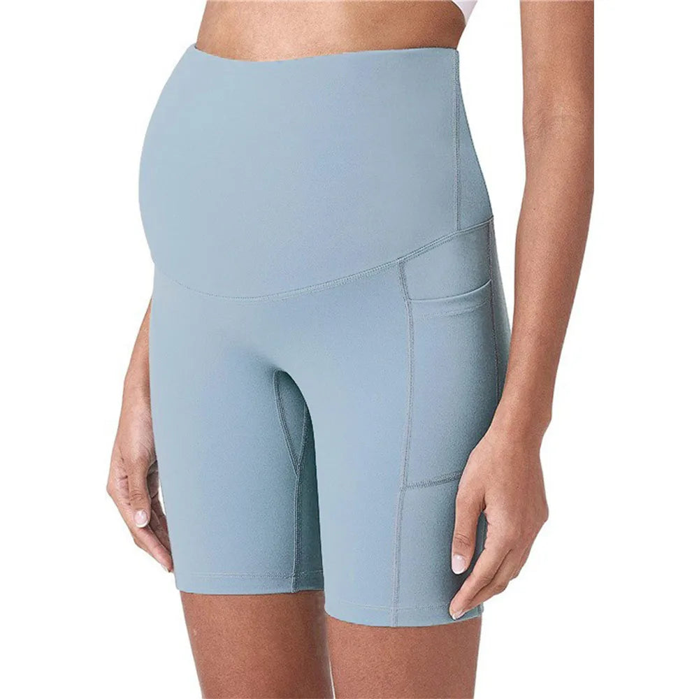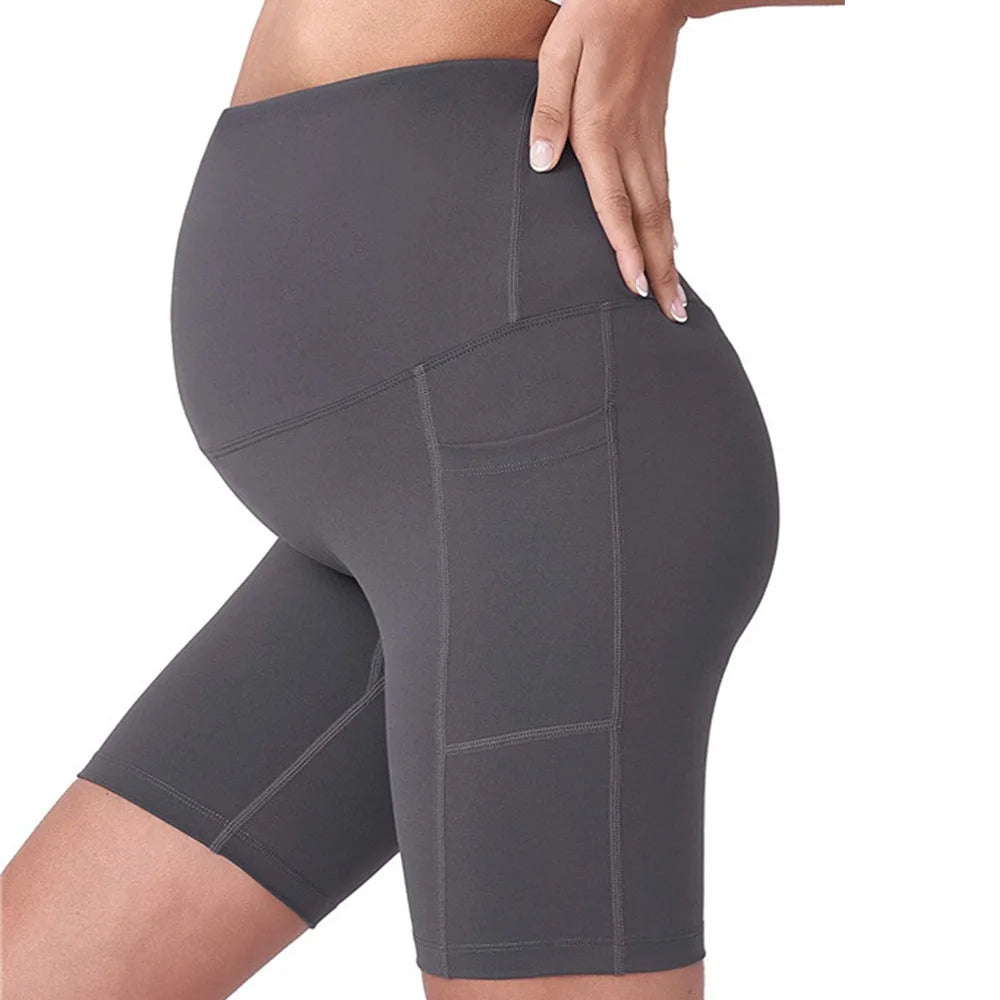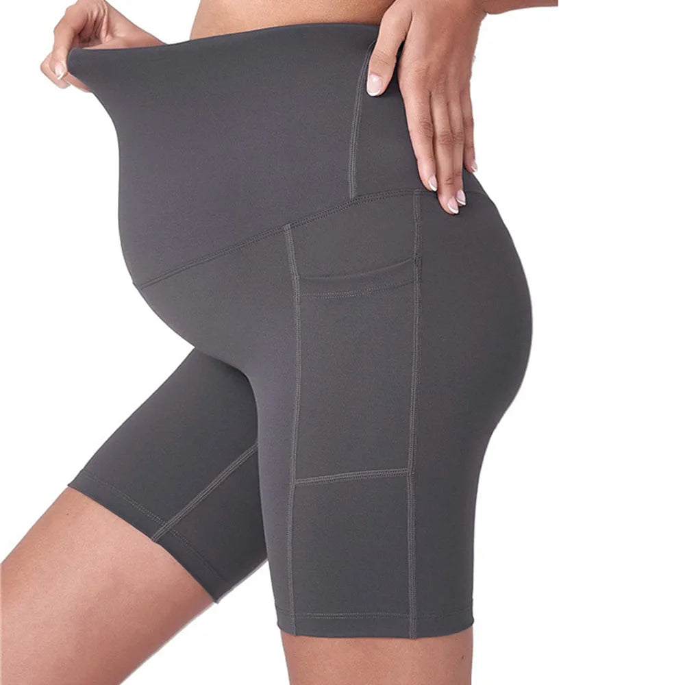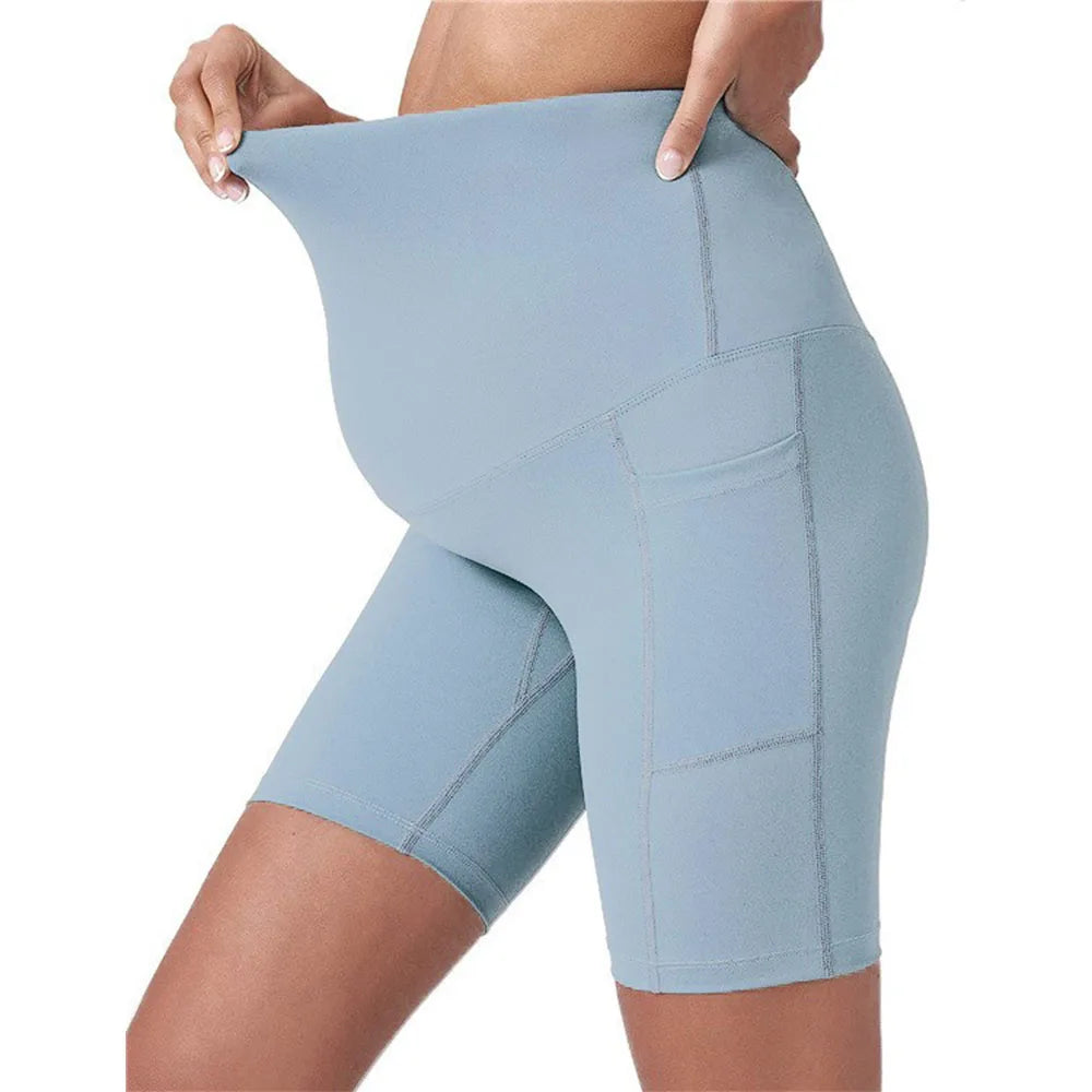 Women's Maternity Yoga Shorts Over The Belly Bump Summer Workout Running Active Short Pants with Pockets