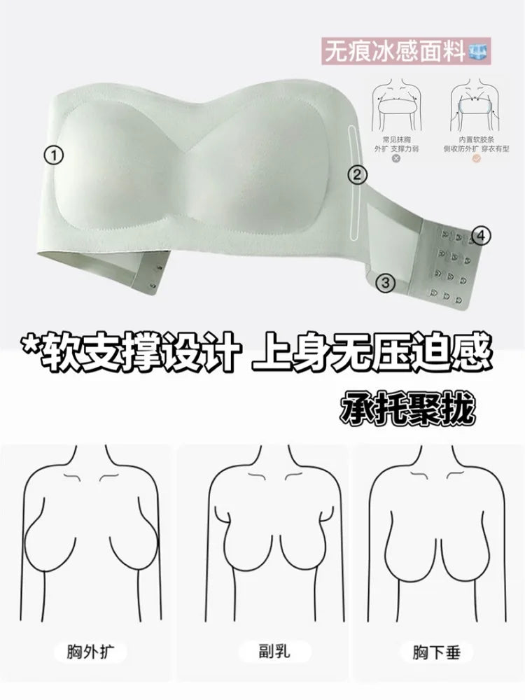 YUQI super stable strapless underwear women thin spread chest non-slip non-trace wrap chest anti-slip small chest push-up bra